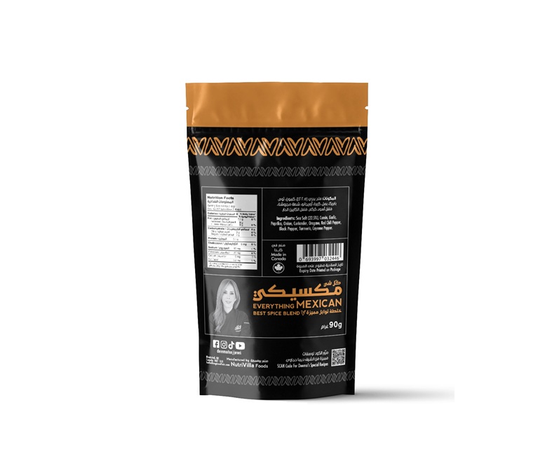 استمتع بنكهات المكسيك مع مزيج التوابل المنعش هذا، وحضّر أشهى الفاهيتا في ٢٠ دقيقة فقط! هذا المزيج الشهي مثالي أيضًا للبوريتو، والإنتشلادا، والتاكو، والكيساديلا، ورقائق التورتيلا المنزلية. جرّب النكهات المكسيكية، ودع الاحتفال يبدأ! المكونات: ملح البحر (٢٢.٥٪)، كمون، ثوم، بابريكا، بصل، كزبرة، أوريجانو، فلفل أحمر حار، فلفل أسود، كركم، فلفل كايين.