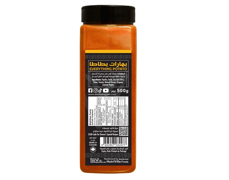 The perfect blend for the perfect side dish! Not too spicy, not too bland, just right for your taste buds. Remember those amazing reddish potatoes you devoured the last time you had breakfast or brunch out? Look no further! You can now make your own at home with our super easy-to-use blend. An amazing and simple way to season your potatoes, no matter their size, colour or way you cook them! You can also cheat and sprinkle directly on your eggs. Thank us later! Ingredients: Paprika, Garlic, Sea salt (23%), Onion, Tomato powder, Natural flavour, Oregano, Cayenne pepper.
