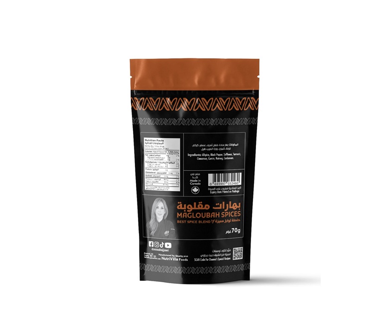 Magloubah is a delicious dish that comes from very ancient roots and is quite popular in the Levantine countries. Magloubah literally translates as upside down. This delicious dish consists of eggplants, cauliflower, bell pepper, tomatoes, onions, lamb or chicken, spices, and rice. The ingredients are all slow cooked in one pot - arranged in layers facing down. Once the melting pot of aromas has emerged, a large serving plate is placed over, pressing it tightly against the pot, and then flipping it back facing up. Sprinkle with pine nuts, parsley and enjoy! Ingredients: Allspice, Black pepper, Safflower, Turmeric, Cinnamon, Cumin, Nutmeg, Cardamom.
