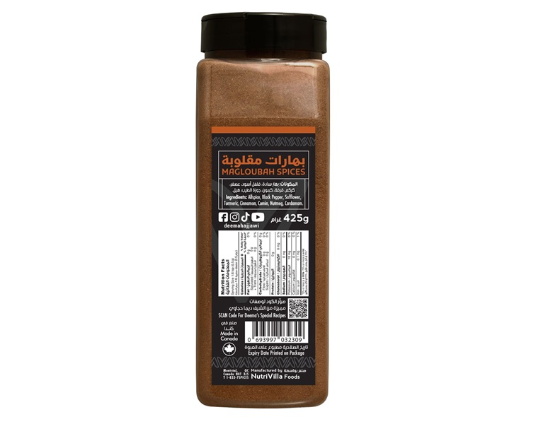 Magloubah is a delicious dish that comes from very ancient roots and is quite popular in the Levantine countries. Magloubah literally translates as upside down. This delicious dish consists of eggplants, cauliflower, bell pepper, tomatoes, onions, lamb or chicken, spices, and rice. The ingredients are all slow cooked in one pot - arranged in layers facing down. Once the melting pot of aromas has emerged, a large serving plate is placed over, pressing it tightly against the pot, and then flipping it back facing up. Sprinkle with pine nuts, parsley and enjoy! Ingredients: Allspice, Black pepper, Safflower, Turmeric, Cinnamon, Cumin, Nutmeg, Cardamom.